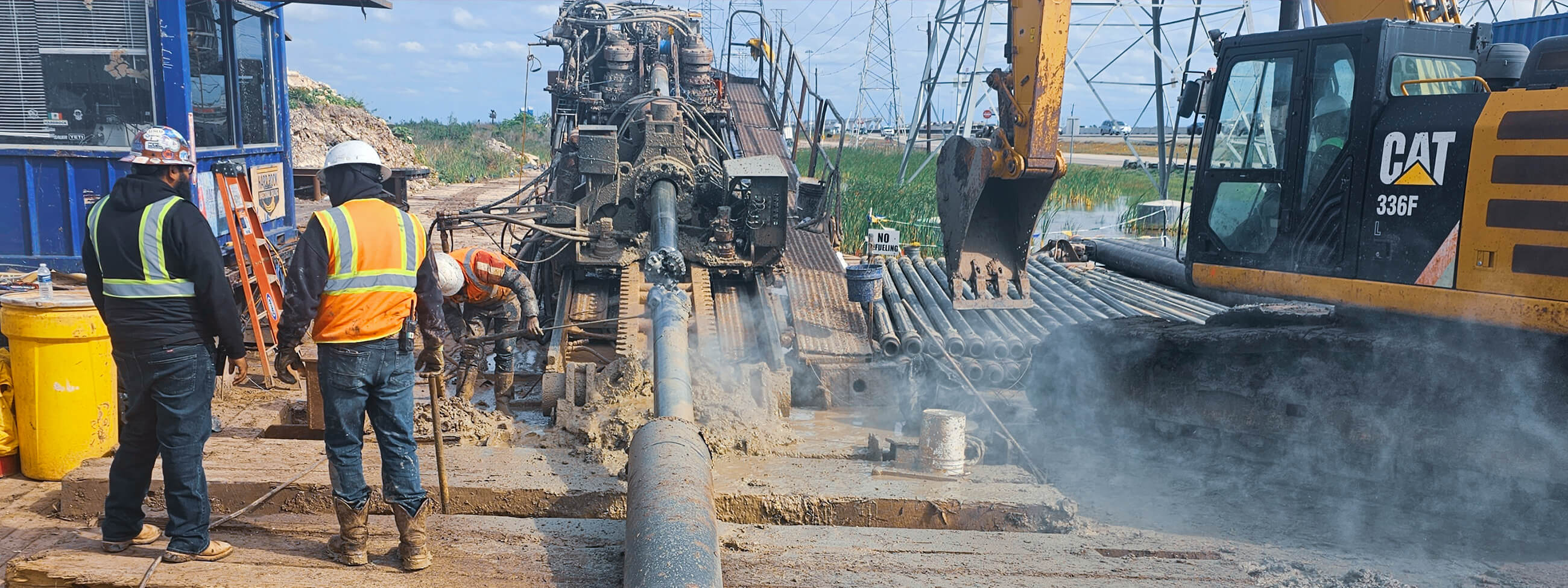 Esta perforación tuvo lugar a lo largo del Gulf Freeway (I-45) cerca de La Marque, entre Houston y Galveston. Junto a la autopista hay una gran zona pantanosa bajo la que había que perforar. Debido a este terreno, apenas había acceso al nivel del suelo por encima de la trayectoria de perforación. Además, los suelos aluviales blandos exigían una vigilancia constante para garantizar que el perforación no se desviara por debajo de la trayectoria prevista. La tubería debía instalarse a lo largo de una línea eléctrica de alta tensión, cuyos torres y cables se encontraban directamente por encima de la trayectoria de perforación.