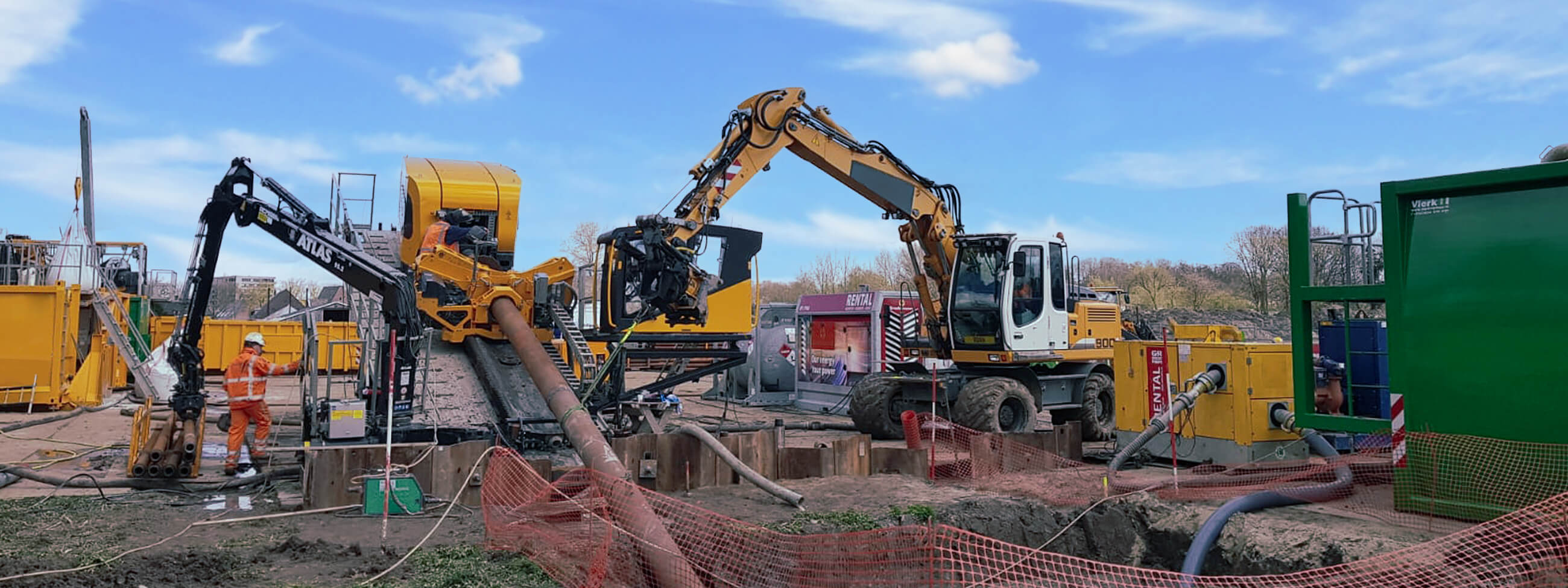 La trajectoire de ce double forage de 1075 mètres de long a été tracée à une profondeur de 24 mètres et a couru à proximité du parc d'activités susmentionné, d'un petit lac et d'un centre équestre. De plus, une voie de bus existante a dû être traversée et il y avait déjà plusieurs conduites souterraines à proximité immédiate de la trajectoire. Travailler avec la plus grande précision et le moins de nuisance possible pour l'environnement était de la plus haute importance dans ce travail de forage. En combinant le Drillguide Gyro Steering Tool avec le GPS Track, le forage a été exécuté avec une précision extrême et avec un impact minimal sur l'environnement. Les plans de construction pour le quartier et la construction de la forêt alimentaire unique peuvent être réalisés selon le calendrier du projet.