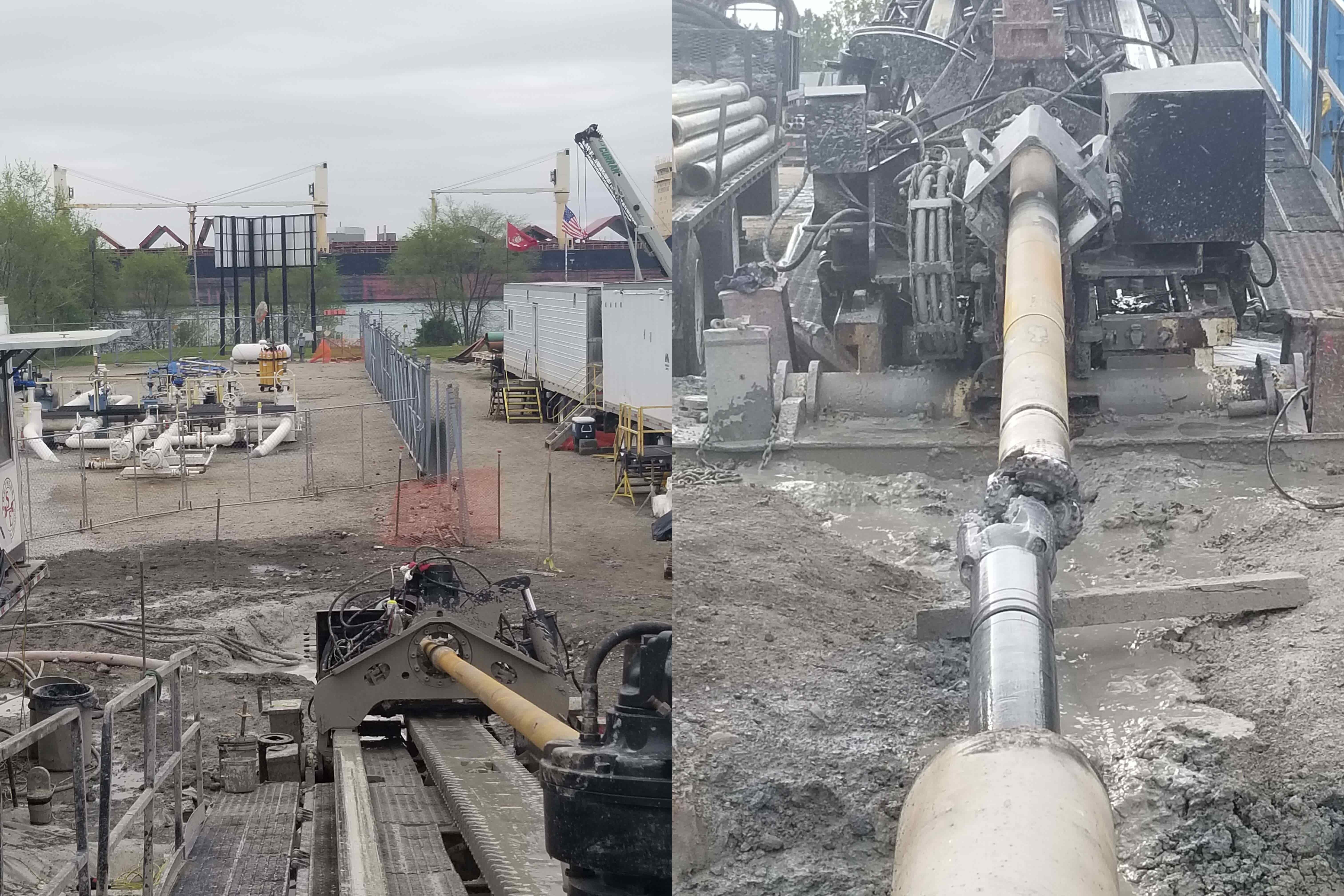 Om deze pijpleiding te vernieuwen, werd er onder de Detroit River op de grens tussen Canada en de Verenigde Staten geboord door Southeast Directional Drilling. Voor het inmeten van deze 1200 meter lange boring sloegen onze ervaren medewerkers van beide zijden van de grens de handen ineen. Met een complexe S-bocht van 80° en een krappe radius, was er zeer weinig ruimte voor afwijkingen. Daarom gebruikten we de Gyro Steering Tool en Radar voor deze intersectboring.