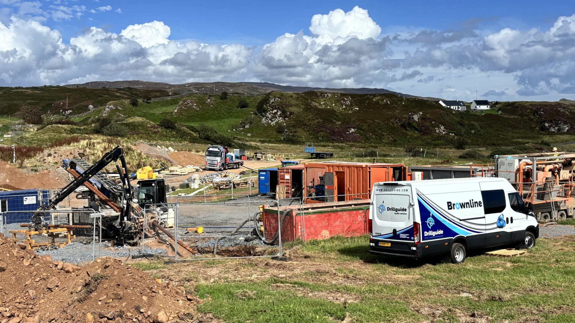 In augustus 2025 heeft Brownline UK bijgedragen aan een boorproject op het Schotse eiland Islay. Hier werd een afvalwaterleiding van een whiskystokerij aangelegd door middel van een horizontaal gestuurde boring. Om perfecte nauwkeurigheid te garanderen bij het boren door de harde rotslagen, werd de pilotboring ingemeten met de Drillguide Gyro Steering Tool.