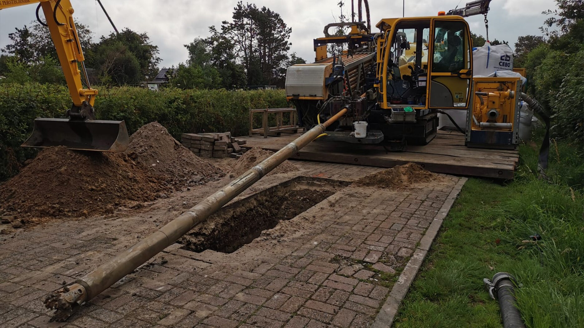 De boring liep parallel aan de Vennewatersweg en werd uitgevoerd door Klever Boor- & Perstechniek. Op de smalle strook tussen de weg en de percelen was maar weinig ruimte voor het materieel. Ook onder de grond was weinig ruimte: daar waren enkele jaren geleden al twee leidingen aangelegd.