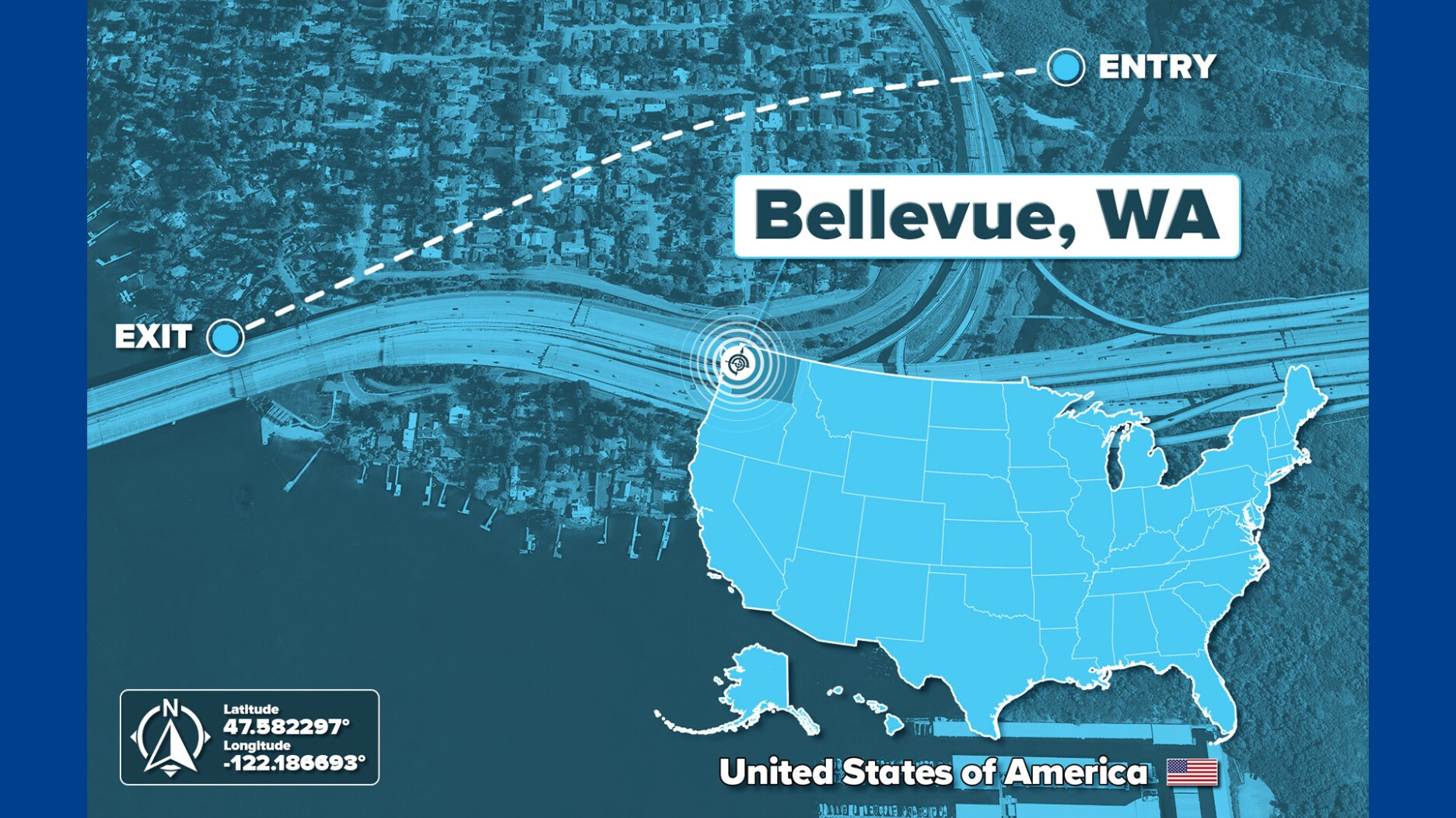 De boring ging van start bij het pompstation, vlakbij van een drassig gebied. Vanaf daar werd onder de rijbanen van snelweg I-90 geboord. Onder de heuvel dook de boring tot 49 meter onder het maaiveld en werd een curve van 18° gemaakt. De uittrede lag bij de kust van Lake Washington, vlak bij de brugpilaren van de snelweg. Tussen de woonwijk, het meer en de snelweg was er weinig speling bij uittrede.