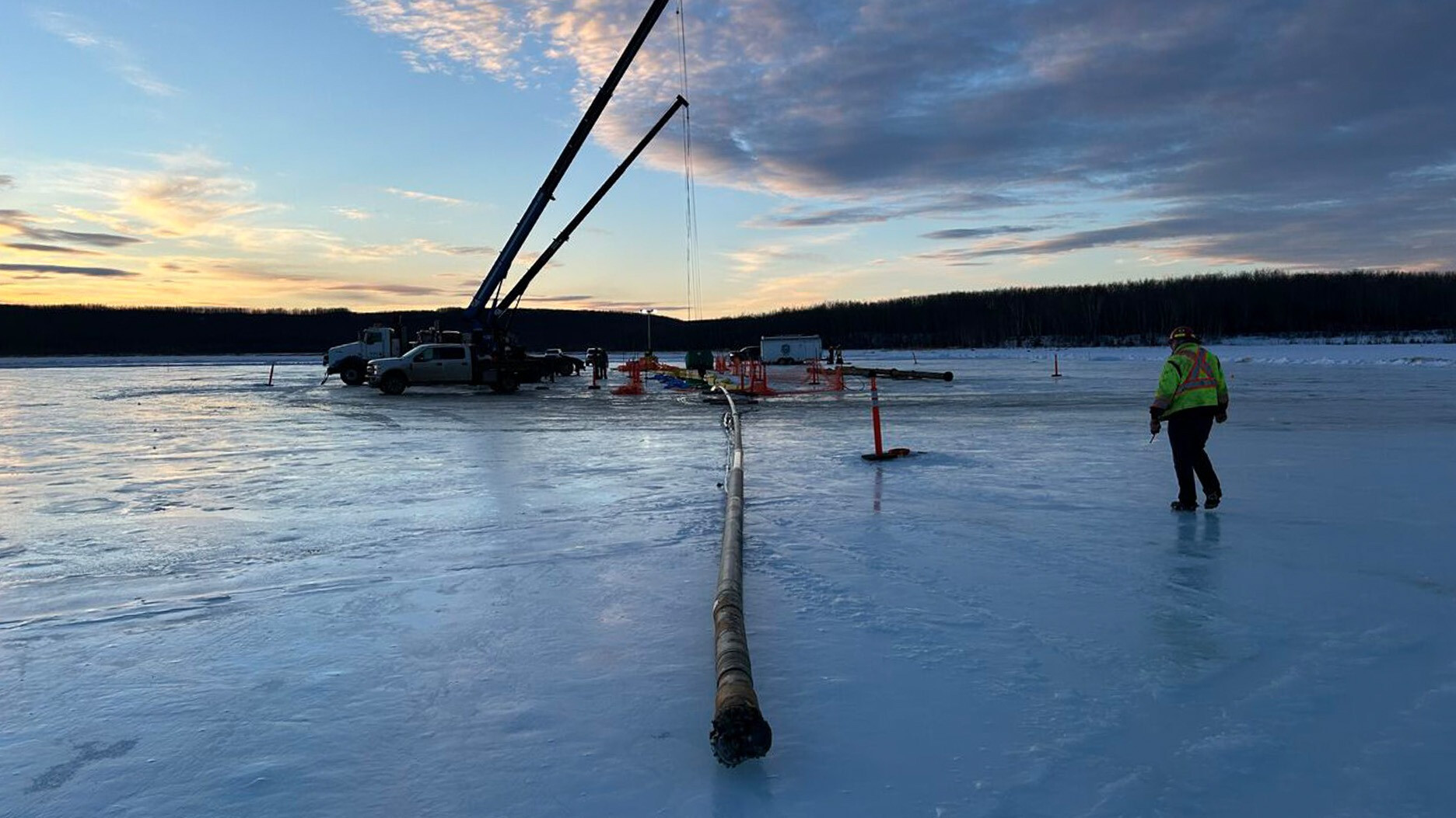 In februari 2025 heeft Brownline Canada een boring ingemeten voor een bijzonder project in het oosten van Alberta. Een pijpleiding voor de toevoer van ruw water werd hier aangelegd met een horizontaal gestuurde boring, die uitkwam op de bodem van een bevroren meer!