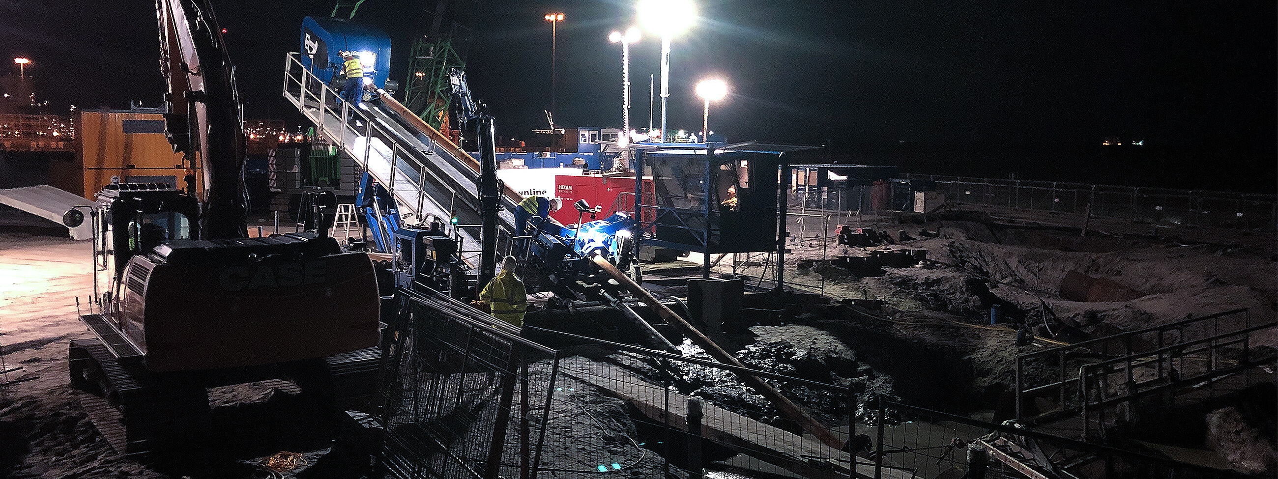 Ondanks de uitdaging van verschillende grondwaterstanden die na het uitboren druk op het boorgat uitoefenden, konden de 4 ducts in de zomer van 2019 succesvol op de geplande wijze worden geïnstalleerd.