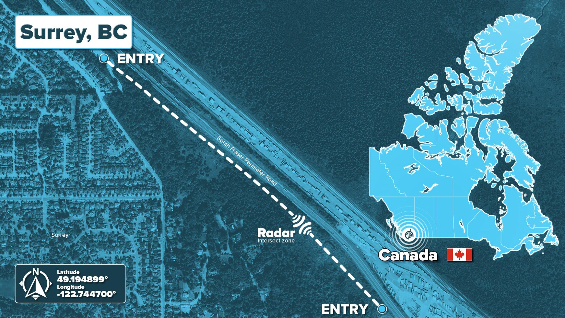 De leiding loopt parallel aan de South Fraser Perimeter Road. Om de kwetsbare natuur hier te ontzien werd dit deel van de leiding met een horizontaal gestuurde boring aangelegd. Hiervoor moest bijna 1500 meter geboord worden, door uitdagende en gevarieerde grond.