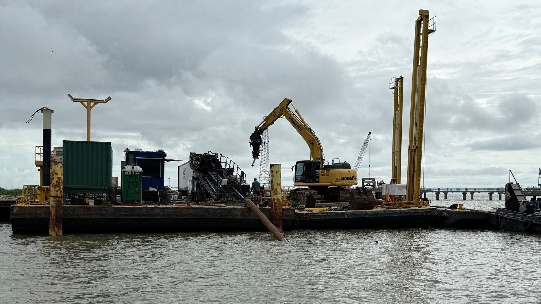 Barge drillings to install gas pipeline in Louisiana bayou