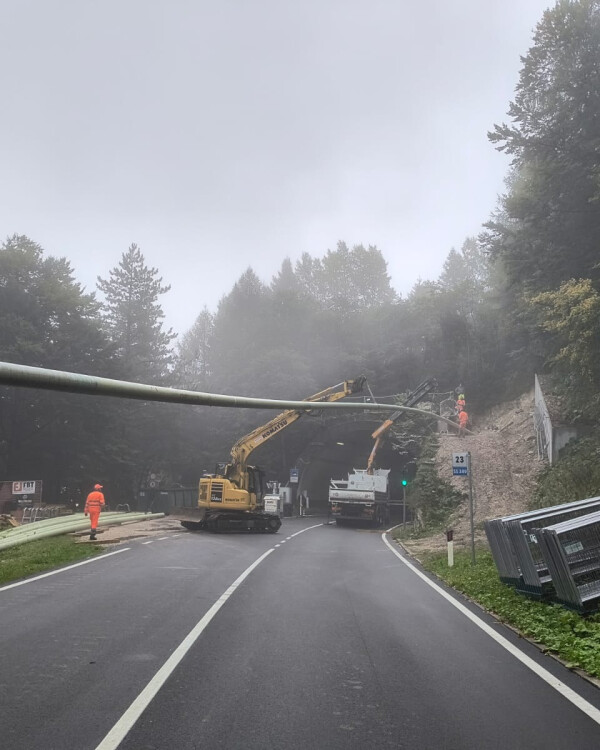 Trenchless contractor DIM Group carried out the horizontal directional drilling for this mountain crossing. A design was made for a 951 m / 3120 ft bore next to the tunnel. The drill path kept a consistent pitch of 1.2° and made a large horizontal curve of 53° to follow the curve of the tunnel.