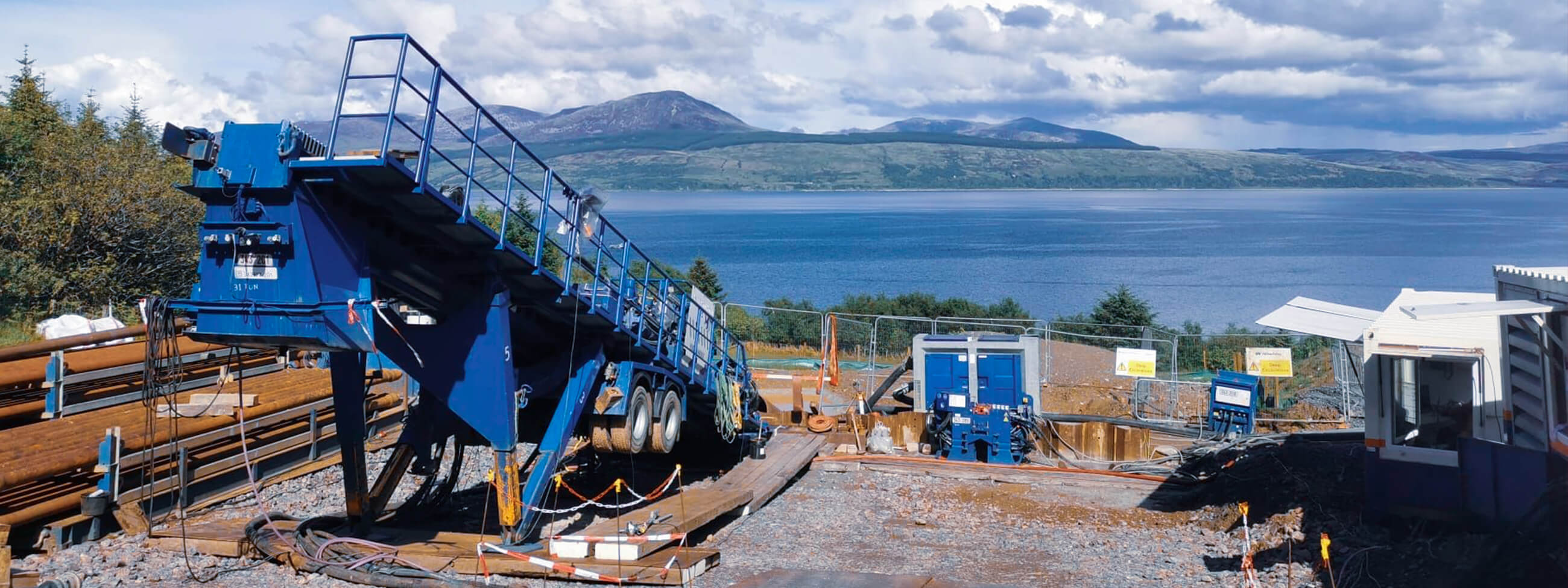 In the summer of 2022, Brownline surveyed two pilot bores in Scotland. These were outfalls to install high voltage power cables. In order to improve the electricity connection between Carradale and the Isle of Arran, the submarine cable was replaced. It was brought to shore with a horizontal directional drilling.