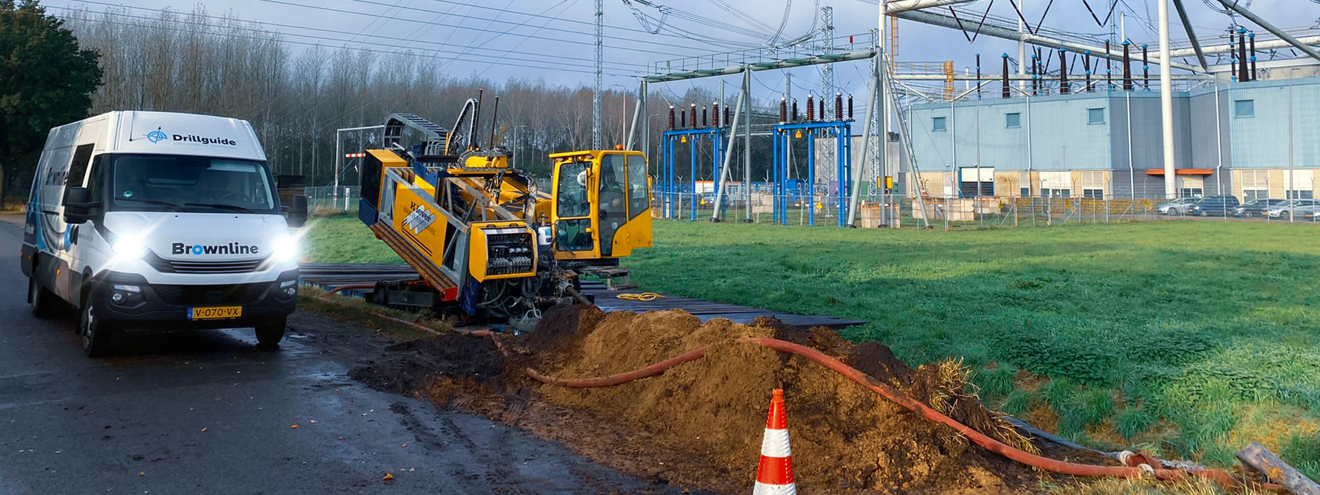 The 295-metre-long bore took place just outside the high-voltage substation southeast of the village of Meeden. The trajectory of this drill job has been plotted at a depth of 16 meters and exactly follows the course of a street with several buildings. The soil consists of different layers of clay, peat and sandy soil and already houses a number of existing pipelines. The combination of the soil conditions and the external interference from the high-voltage substation and the existing pipelines require an unperturbed and accurate tool. By choosing the Drillguide Gyro Steering Tool, this bore was performed safely and with extremely precise results.